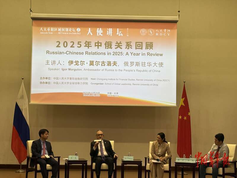 当天,莫尔古洛夫出席中国人民大学重阳金融研究院举办的区域国别论坛之“大使讲坛”活动。他在演讲中表示,无论是从深度还是互信程度而言,俄中关系都已达到历史最高水平,达到前所未有的高度,且继续保持着稳健而富有活力的发展势头,俄中关系已成为21世纪大国间建设性互动的典范。